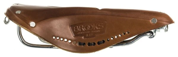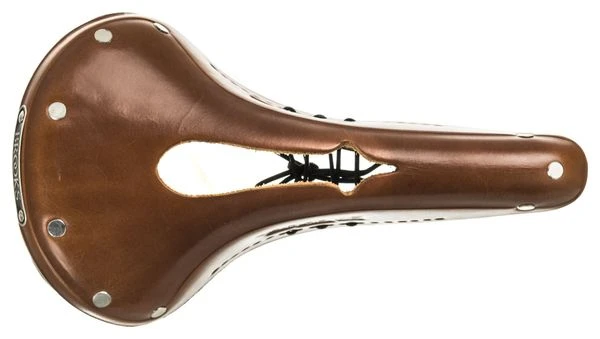 The B17 Narrow Imperial is another variation of our time-honoured B17 design, featuring a distinctive cut-out section in the top of the leather, first conceived and registered by Brooks over a century ago. In the catalogue of J.B. Brooks & Co. dated 1890 a model called the B86 Imperial, with its unique «registered cutting», is described as «a sure preventative to all perenial pressure». Another distinctive feature of the B17 Narrow Imperial are the perforations along the lower edge of the leather sides, which are threaded together one side to the other by a lace. This can be adjusted to help maintain the saddle’s shape and provide comfort in the long term. Tying the leather lace tightly pulls the sides of the saddle closer together, conversely loosening the lace enables the saddle sides to splay slightly further apart. This sideways fine-tuning of the B17 Narrow Imperial is of course in addition to the usual fore-and-aft tensioning mechanism common to all Brooks Saddles.