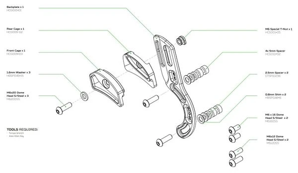 Diseñado para momentos en los que no puede permitirse viajar sin un chainguide Caracteristicas : Instalar sin quitar la manivela Se adapta a una amplia gama de tamaños de platos (28T 36T) Construcción ligera súper rígida ISCG-05 compatible (SOLAMENTE) Instalación y ajuste de herramienta única Hardware de acero inoxidable / aluminio Placa posterior mecanizada CNC de la placa de aluminio de la serie 7000 Jaula mecanizada CNC de plástico de ingeniería La versión STD acomoda anillos de 28-36t Hardware cautivo Peso Versión STD: 65G (Incluyendo hardware)