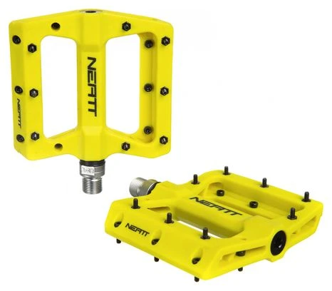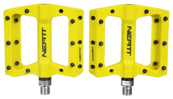 El par de pedales planos Neatt Nylon ofrece un agarre ideal gracias a sus 8 pines metálicos por lado a la vez que aporta la ligereza que buscas. Detalles : Cuerpo: Nylon + Fibras Eje: Cr-Mo Rodamientos sellados 8 pines por lado, reemplazables Dimensiones (largo x ancho x alto): 103 x 107 x 25 mm Eje: 9/16 '' Peso: 357g