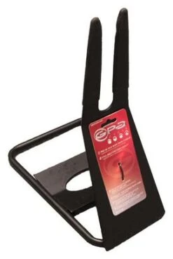 Pie de bicicleta de acero que ahorra espacio con una muy buena estabilidad. Los extremos son de goma para no rayar labicicleta.