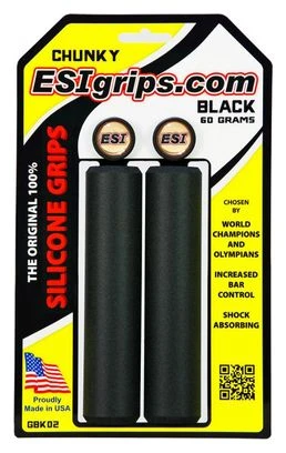 PUÑOS ESI GRIPS CHUNKY – BLACK NONEEstos puños de bicicleta ESI Grips Chunky están diseñados para brindar comodidad y durabilidad a los ciclistas de montaña.Hechos de material de silicona de alta calidad.Ofrecen un excelente agarre y reducen la fatiga de las manos.Disponibles en color negro. Con un diseño ergonómico y resistente, estos puños son ideales para los ciclistas que buscan mejorar su experiencia en terrenos difíciles. ¡Prueba los puños ESI Grips Chunky para un mejor rendimiento en tu bicicleta de montaña!Ideal para los ciclistas que buscan la máxima absorción de impactos. A diferencia de otros puños, éstos están hechos de silicona, por lo que tienen un gran agarre, tanto en seco como en mojado, se adhieren a la barra (no se necesitan cierres ni bridas) y soportan temperaturas extremas y la exposición a los elementos.