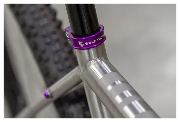 Mecanizada en aluminio 6061 en nuestras instalaciones de Minneapolis, la abrazadera de tija de sillín Wolf Tooth está disponible en seis tamaños y en una variedad de colores anodizados.