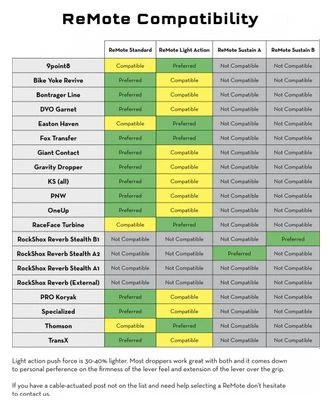 Amplia compatibilidad : ReMote ha sido probado y se recomienda para su uso con muchos postes cuentagotas accionados por cable. Consulte la sección de compatibilidad a continuación para obtener más detalles.